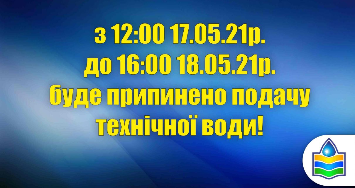 Буде припинено подачу технічної води на квартали № 1,2,3,4,5 з 12:00 17.05.21р. до 16:00 18.05.21р.