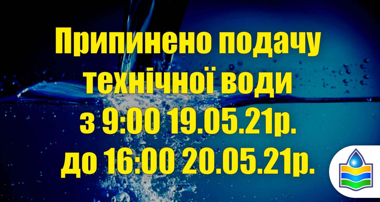 Припинено подачу технічної води з 9:00 19.05.21р. до 16:00 20.05.21р.